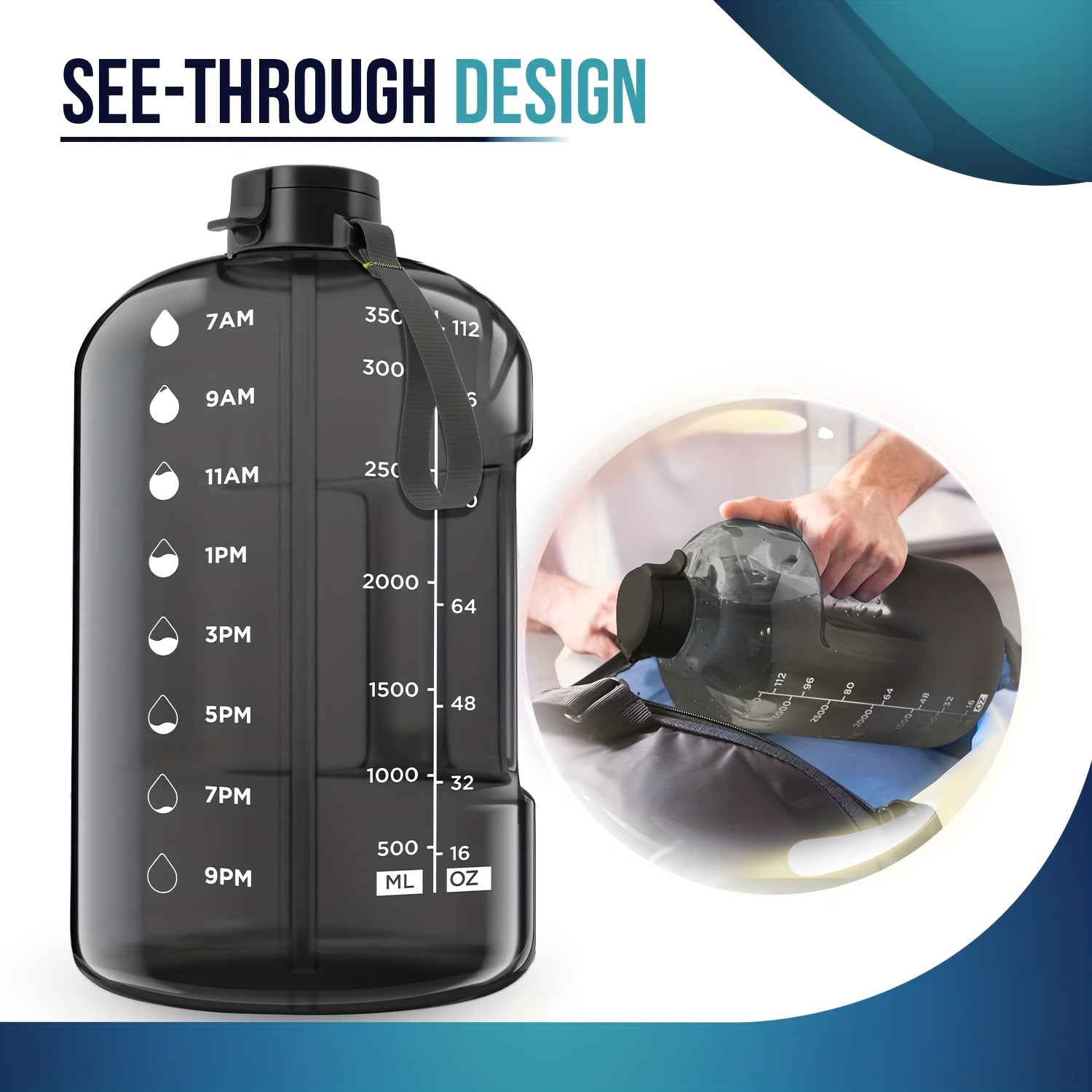 1pc 3.8L/128oz Portable Large Capacity Water Bottle With Time Marker, Transparent Leakproof Water Bucket With Straw, Suitable For Gym Fitness, Outdoor Sports