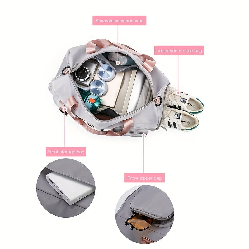 Eonothem High Quality Large Capacity Travel Duffle Bag - Adjustable Shoulder Strap, Multiple Pockets, Polyester Sports Gym Weekender Bag for Women in Bright Pink/Peacock Green/Peach/Light Grey/Light Blue//Blue/Black, Fitness