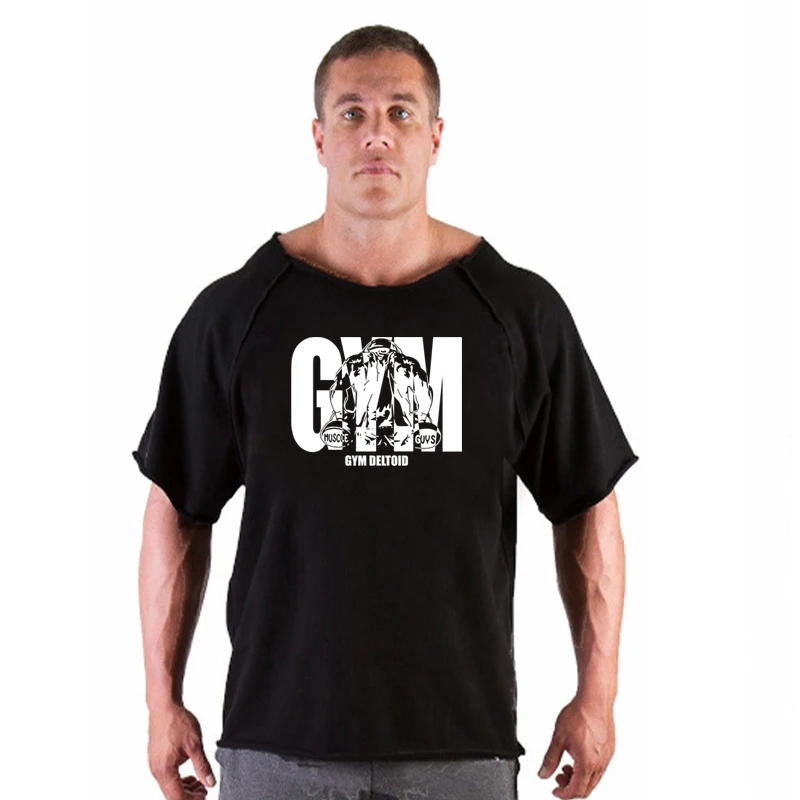 Mens Fashion Casual Loose Oversized Short Sleeve T-shirt Dropped Shoulder Fitness Wear T Shirt Summer Gym Bodybuilding Tops Tees
